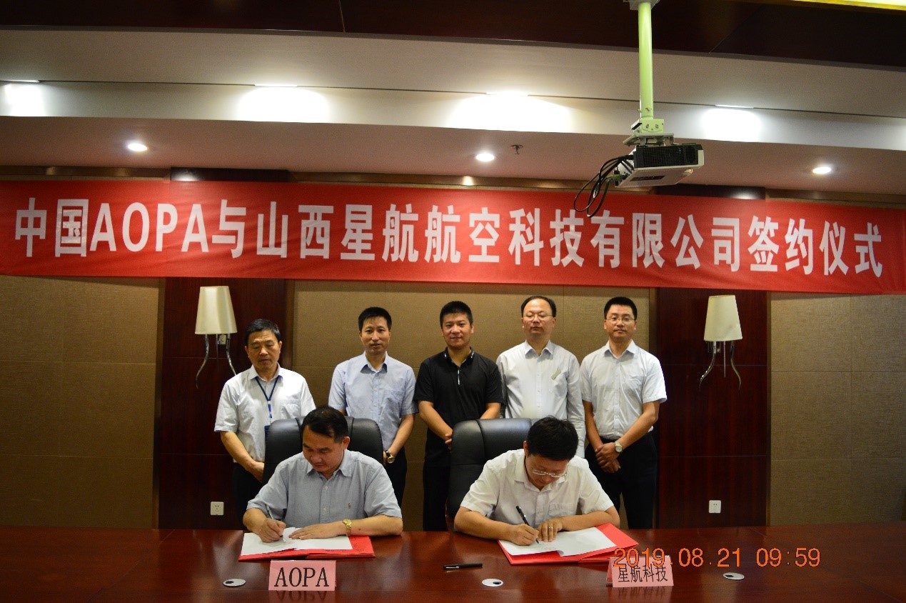 2019年8月21日,山西星航航空科技有限公司與中國(guó)航空器擁有者及駕駛員協(xié)會(huì)簽約儀式在星雅酒店五層會(huì)議室隆重舉行。參加此次簽約儀式的有中國(guó)航空器擁有者及駕駛員協(xié)會(huì)副秘書(shū)長(zhǎng)丁邦昕先生、教育事業(yè)部市場(chǎng)總監(jiān)趙珠寶先生、中維控股集團(tuán)總裁郭雅磊、山西星航航空科技有限公司總經(jīng)理單永平、副總經(jīng)理鄭全勝。